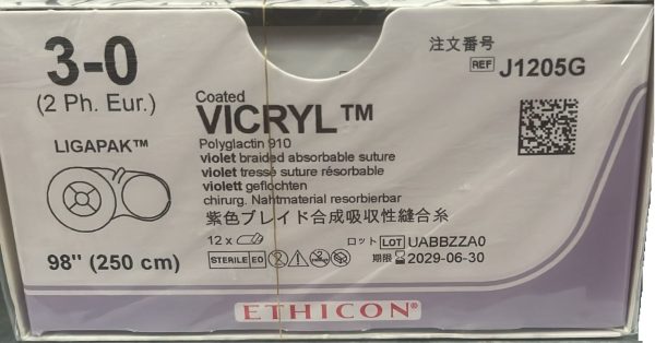 DESTINAZIONE D’USO: VICRYL è indicato per l’approssimazione e/o legatura dei tessuti molli, incluso l’utilizzo in chirurgia oftalmica, nell’anastomosi dei nervi periferici e la microchirurgia dei vasi di diametro inferiore a 2 mm. La sicurezza e l’efficacia delle suture VICRYL nel tessuto cardiovascolare non sono state definite.